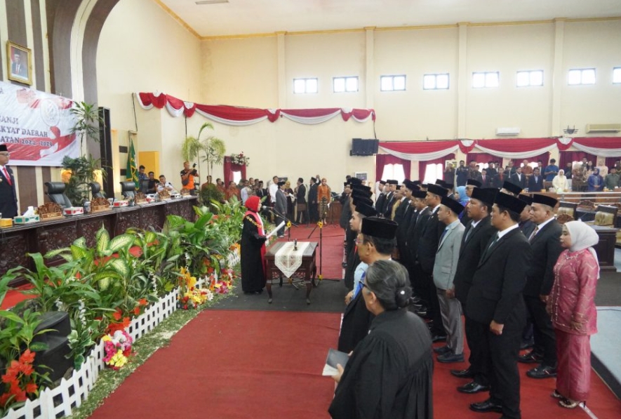banyuasin-Kabarkata.com.Sebanyak 45 anggota Dewan Perwakilan Rakyat Daerah (DPRD) Kabupaten Banyuasin resmi dilantik dan diambil sumpahnya untuk masa jabatan periode 2024-2029. Bertempat di Gedung Paripurna DPRD Banyuasin, pelantikan ini dipimpin oleh Ketua Pengadilan Negeri Pangkalan Balai, Nopita Dwi Wahyuni, SH., MH., pada Rabu (11/09/2024).