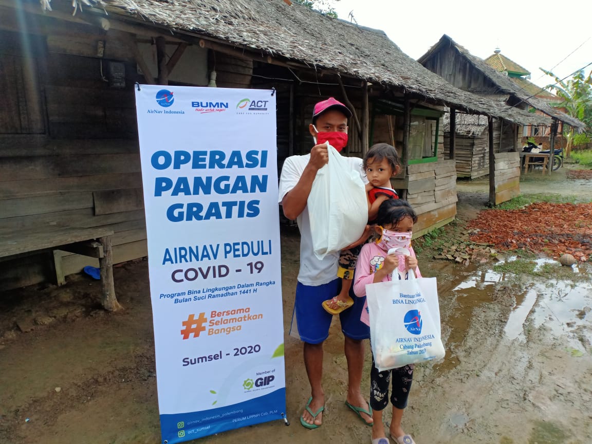 “Hari ini kami dari AirNav Cabang Palembang, bekerjasama dengan ACT Sumsel dalam program bina lingkungan memberikan bantuan berupa sembako sebanyak 120 paket, untuk masyarakat. Dengan adanya sedikit bantuan ini semoga bisa meringankan beban masyrakat yang terdampak Covid-19,” kata dia