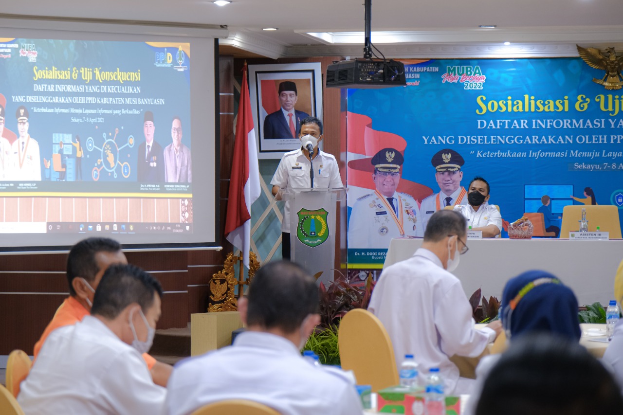 Kepala Dinkominfo Muba Herryandi Sinulingga AP dalam laporannya menyampaikan kegiatan sosialisasi, dilaksanakan berdasarkan Undang-undang Nomor 14 Tahun 2008 Tentang Keterbukaan informasi Publik, Undang-undang Nomor 25 Tahun 2009 Tentang Pelayanan publik, Permendagri Nomor 3 Tahun 2017 Tentang Pedoman pengelolaan pelayanan informasi dan dokumentasi di lingkungan Kementerian Dalam Negeri dan Pemerintah Daerah, Peraturan Komisi Informasi Nomor 1 tahun 2010 Tentang Standar layanan informasi publik, Peraturan Komisi Informasi Nomor 1 Tahun 2013 Tentang Prosedur penyelesaian sengketa informasi Publik, Peraturan Bupati Musi Banyuasin Nomor 26 Tahun 2001 Tentang Pembentukan susunan organisasi dan tata kerja PPID kabupaten Musi Banyuasin seperti yang tertuang pada Undang-undang Nomor 14 Tahun 2008 Tentang Keterbukaan informasi Publik pada 30 April 2010 yang merupakan momentum penting dalam mendorong keterbukaan informasi publik di Indonesia khususnya di Kabupaten Musi Banyuasin.