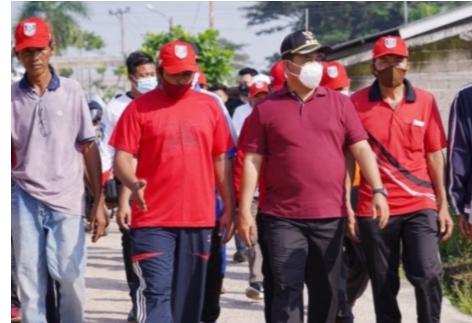 BANYUASIN, KABARKATA.COM – Didampingi oleh Ketua TP PKK Kabupaten Banyuasin, dr. Sri Fitriyanti Askolani , Bupati Banyuasin, H. Askolani, SH., MH lakukan Gotong- royong Kebersihan bersama Para Porkopimda, Kepala OPD, dan Aparatur Sipil Negara di Kelurahan Jakabaring Selatan dan Kecamatan Rambutan, Jum’at (2/4/2021).