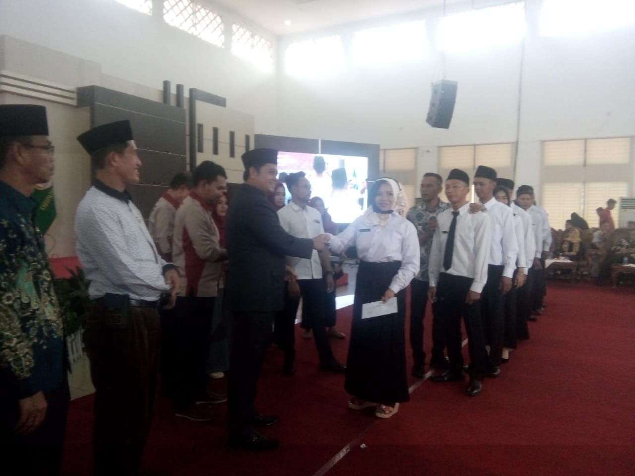 Turut Hadir PJ Sekda Banyuasin H.Senen Har, Forkopimda, Kepala PMD Roni Utama, para kepala OPD, Para Camat,para kepala Desa,dan undangan pendamping anggota keluarga BPD yang dilantik. (Nasir)