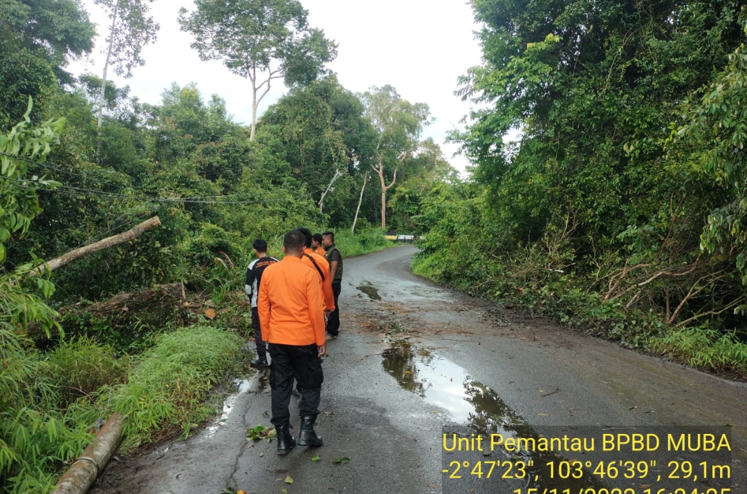 “Hujan lebat yang disertai angin kencang yang melanda, menyebabkan satu pohon tumbang menghambat jalan, Alhamdulillah tidak ada korban jiwa, baik dari pengguna jalan maupun masyarakat sekitar,” kata Kepala BPBD Muba Pathi Riduan SE ATD MM.