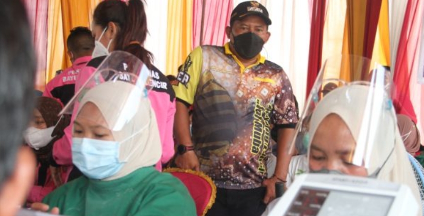 MUBA,KABARKATA.COM- Sinergitas Pemerintah Kecamatan, Polsek, Koramil, dan Puskesmas Bayung Lencir dalam menggelar vaksin massal, Sabtu (26/6/21) dihalaman Kantor Camat Bayung Lencir untuk masyarakat ternyata di sambut baik oleh warga masyarakat Bayung Lencir.
