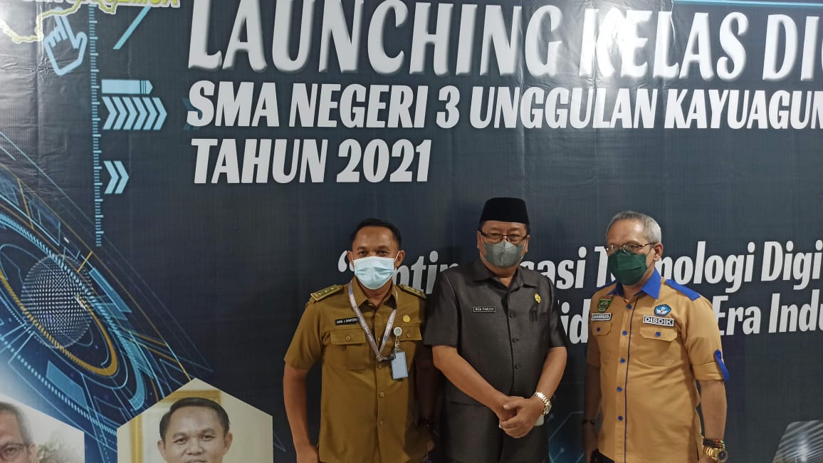 Kamis, 16 September 2021 SMAN 3 Unggulan Kayuagung melaksanakan Kegiatan Lauching Kelas Digital. Kelas Digital adalah salah satu program Unggulan yang di canangkan langsung oleh Kepala SMAN 3 Unggulan Kayuagung H. Anis Joko Santoso, S.Pd., M.M ditahun pelajaran 2020_2021. Lauching Kelas digital SMAN 3 Kayuagung diresmikan oleh Kepala Dinas Pendidikan Provinsi Sumatera Selatan Bapak Drs.H. Riza Fahlevi, M.M. selain kepala dinas pendidikan provinsi hadir juga dalam peresmian tersebut Kepala Bidang SMA H. Masherdata Musa’i, S.H., M.Si, Kasi Kurikulum Dr. Parmin, S.Pd., M.M, Pengurus MKKS Kabupaten OKI, serta beberapa Kepala SMA/MA di Kabupaten OKI.