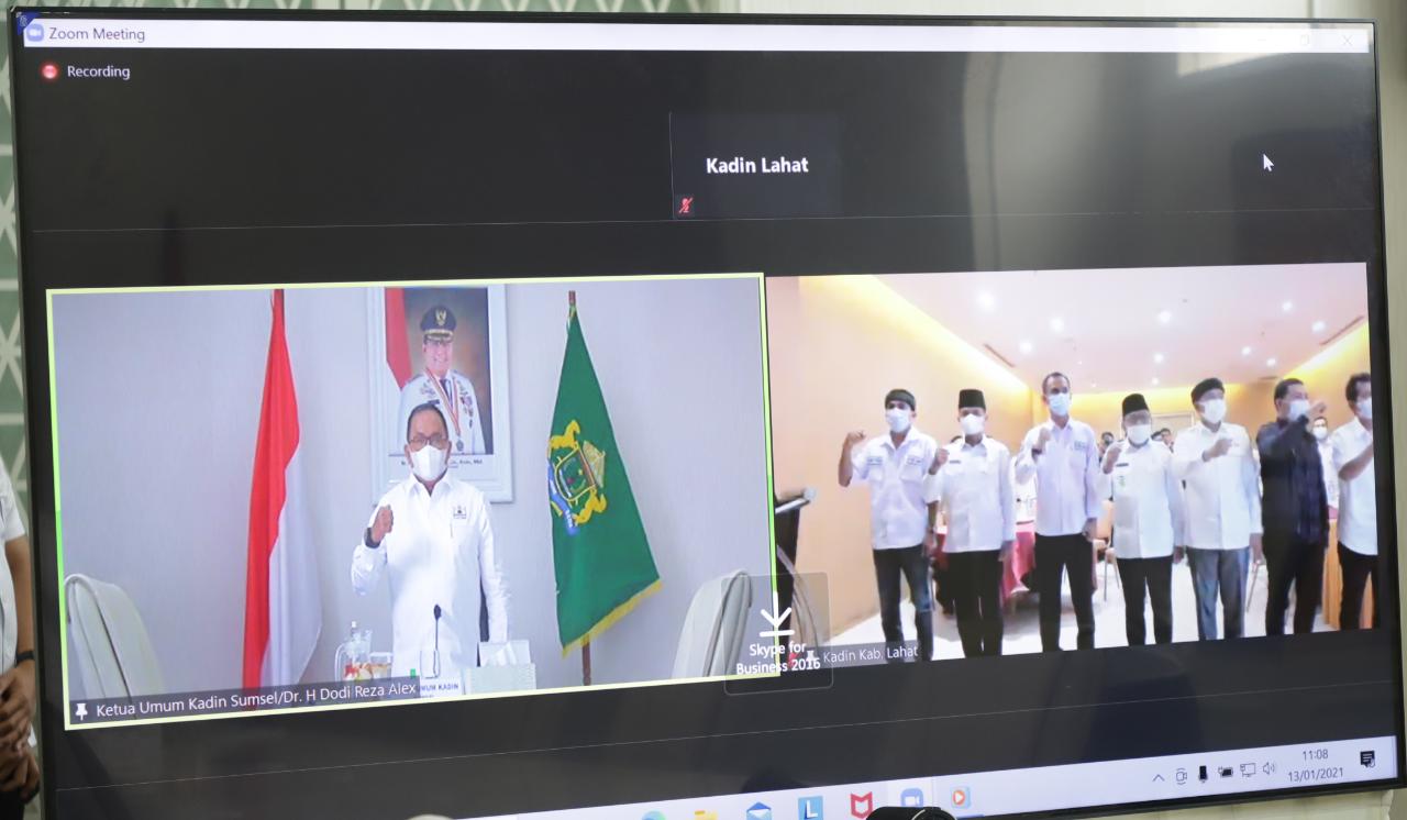 SEKAYU,Kabarkata.com – Bupati Musi Banyuasin Dr H Dodi Reza Alex selaku Ketua Umum Kamar Dagang dan Industri Indonesia (Kadin) Provinsi Sumatera Selatan melantik pengurus Kadin Kabupaten Lahat Periode 2021-2026 secara virtual, di Ruang Rapat Guest Griya Bumi Serasan Sekate, Rabu (13/1/2021).