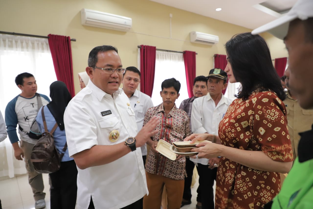 Sekayu,KABARKATA.COM- Bupati Dr Dodi Reza Alex Noerdin Lic Econ MBA meminta seluruh petugas pembagian daging kurban di Kabupaten Muba menggunakan pelepah pinang dan dedaunan seperti daun pisang, daun jati ataupun anyaman bambu untuk wadah daging kurban yang akan dibagikan ke warga.