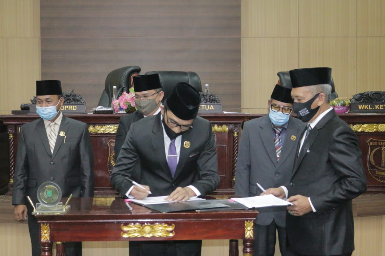 Selanjutnya, pengambilan dan Penandatanganan Persetujuan keputusan bersama antara Pimpinan DPRD dan Bupati Muba terhadap R-APBD Perubahan Muba TA 2020.
