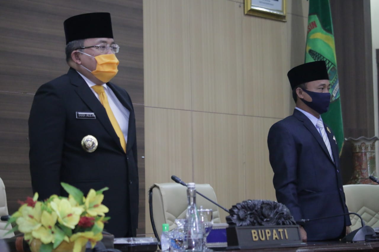 SEKAYU, kabarkata.com- Dewan Perwakilan Rakyat Daerah Kabupaten Musi Banyuasin menggelar Rapat Paripurna dalam rangka penandatanganan persetujuan bersama terhadap 6 (enam) Rancangan Peraturan Daerah Kabupaten Muba tahun 2020 dan penyampaian pendapat akhir Bupati Muba, di Ruang Rapat Paripurna DPRD Muba, Selasa (21/4/2020).