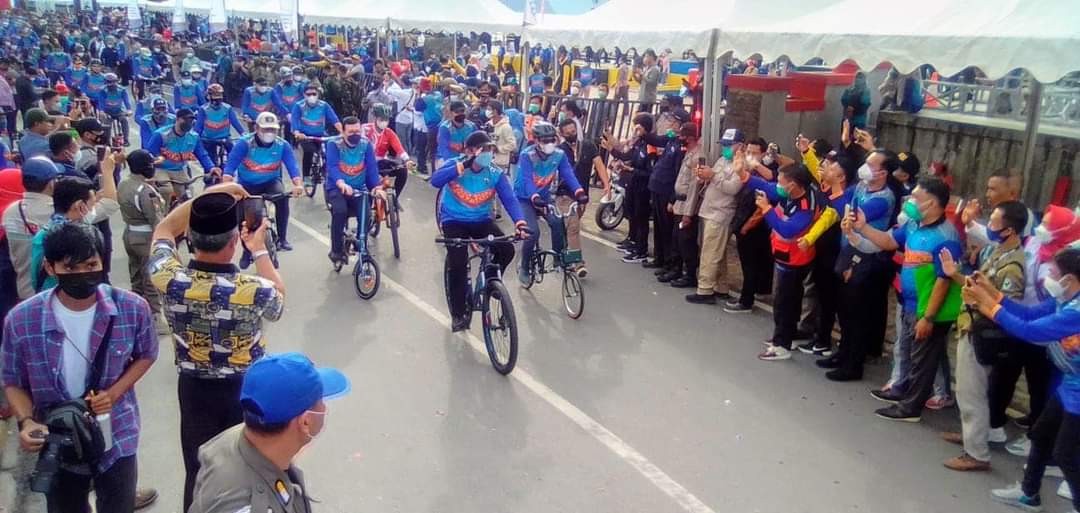 Gubernur Sumsel H.Herman Deru dengan didampingi oleh Bupati OKU Selatan Popo Ali serta Forkopimda OKU Selatan dan Provinsi Sumatera Selatan dan saksikan oleh ratusan masyarakat khususnya masyarakat Ranau dan sekitarnya dengan penuh rasa bangga membuka acara lomba sepeda ini.