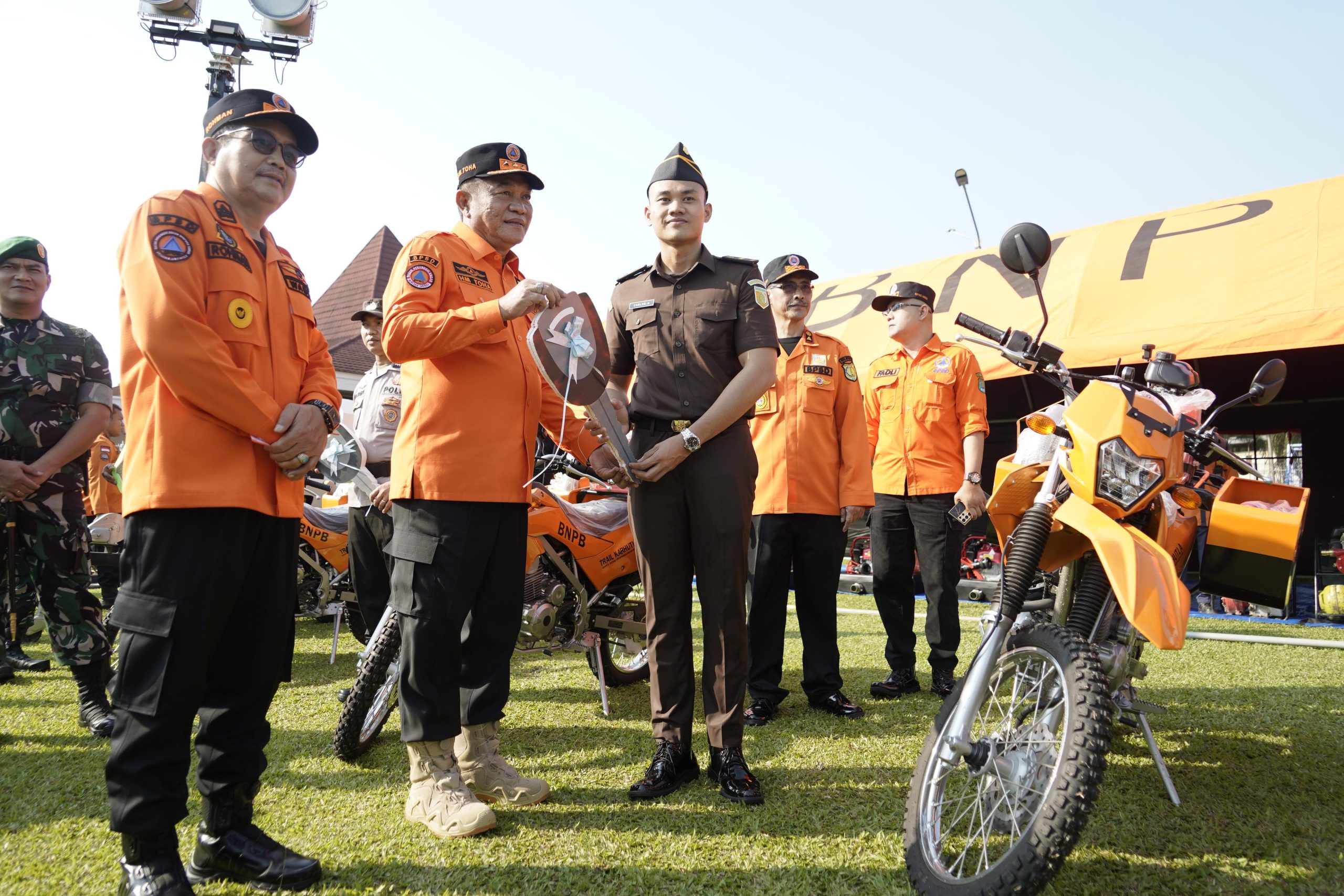 Dalam kegiatan ini dilaksanakan juga penyerahan bantuan hibah berupa, kendaraan roda dua, dan paket peralatan Mesin Pompa Ministriker atau pompa apung, yang diserahkan Bupati Muba kepada Kodim 0401 Muba, Polres Muba, Kejari Muba, dan BPBD Muba.