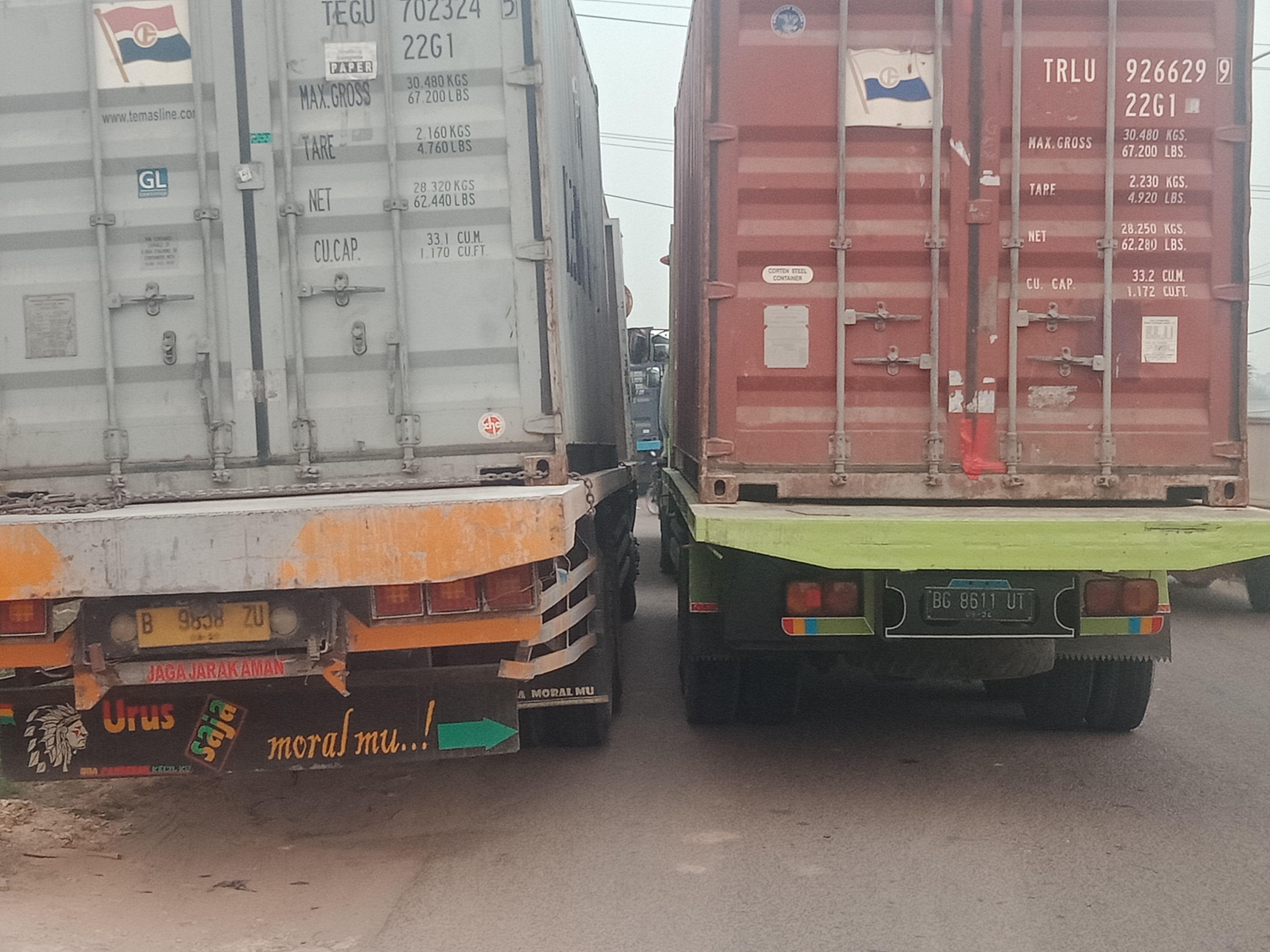 ” cubo jingok na rombongan dio galo”, seraya menunjukan jejeran mobil kontainer besar sepanjang 2 kilometer.