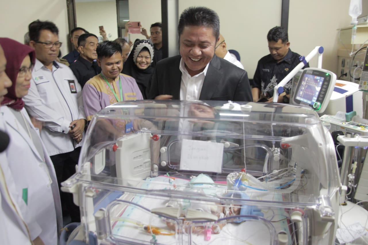 Selama kurang lebih 15 menit, Gubernur masuk ke ruang ICU Graha Spesialis RSMH melihat langsung kondisi bayi Aisyah (yang berhasil selamat usai menjalani operasi 7 jam).