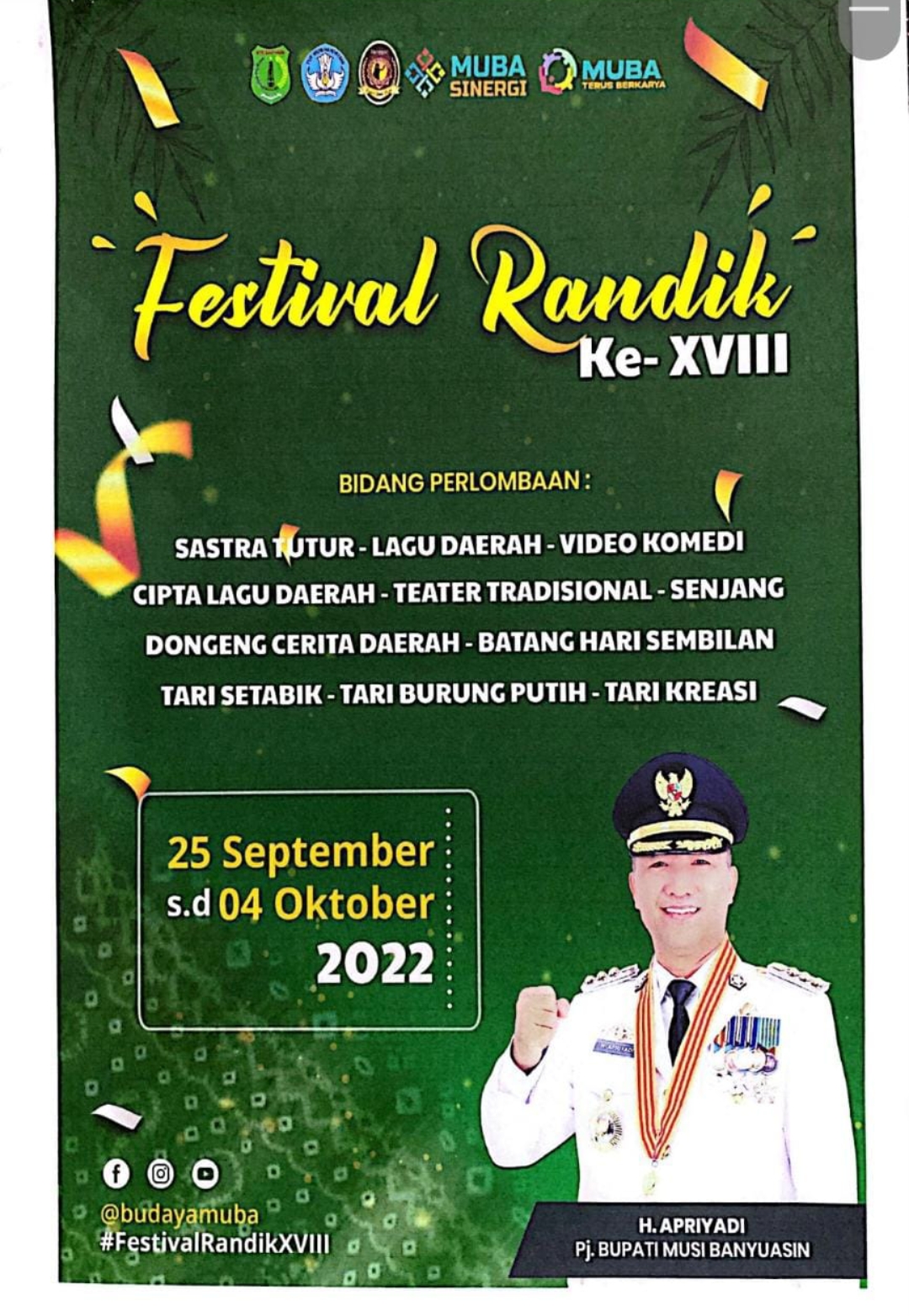 Kepala Dinas Pendidikan dan Kebudayaan Muba, Drs Iskandar Syahrianto MH mengatakan bahwa Festival Randik Kabupaten Muba tahun 2022 merupakan, sarana apresiasi masyarakat dalam mendukung program pemerintah daerah dalam bidang pelestarian dan pengembangan seni/budaya daerah, sekaligus memberikan ruang ekspresi bagi para pelaku seni dan pembina seni tradisional.