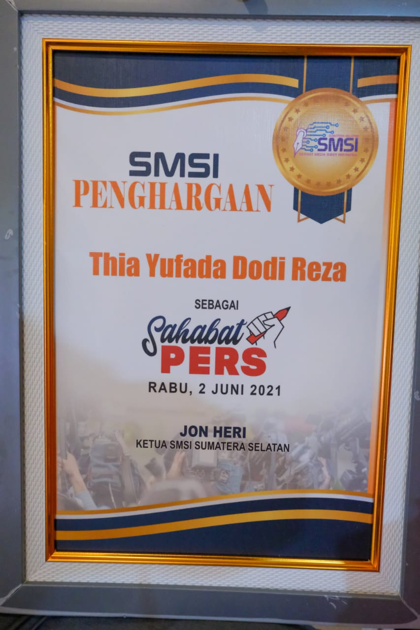 Ketua TP PKK Muba Hj Thia Yufada Dodi Reza Alex mengucapkan rasa syukur dan Terima kasih kepada insan pers dan SMSI Sumsel yang telah menganugerahi dirinya menjadi sahabat pers.