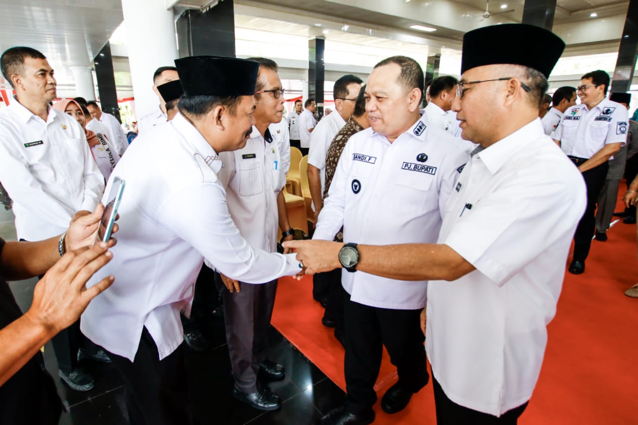 MUBA,KABARKATA.COM- Penjabat Bupati Musi Banyuasin (Muba) periode 2022-2024, H Apriyadi Mahmud menyatakan siap dukung penuh Penjabat (Pj) Bupati Muba H Sandi Fahlepi SP MSi dalam menjalankan tongkat estafet roda pemerintahan Kabupaten Muba, bertepatan pada kegiatan Serah Terima Jabatan (Sertijab) antara Pj Bupati Muba Periode 2022-2024 ke Pj Bupati Muba sekarang, yang berlangsung di Pendopoan Griya Bumi Serasan Sekate, Rabu (24/4/2024).