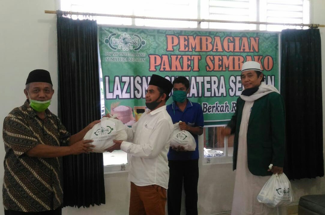“Lazisnu Jum’at Berkah” kali ini memberikan 150 paket sembako kepada tokoh agama dan pekerja informal oleh Ketua Tanfidziyah Pengurus Wilayah NU Sumsel K.H. Amirudin Nahrawi dan Ketua Lazisnu Sumsel Anwar Sadat di Palembang, Jumat (15/5/2020).