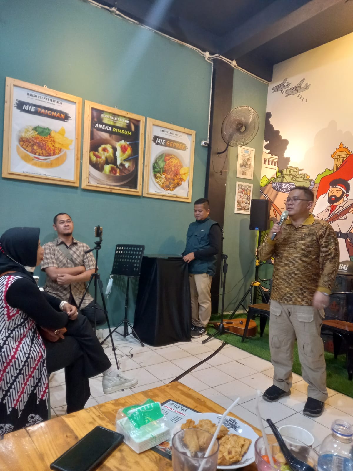“Malam ini penanda kebersamaan kita ada di Gerai Bakso Granat Mas Aziz, lewat Lukisan Mural perang lima hari lima malam yang terpajang didinding, paling tidak mata pengunjung ketika masuk tatapan mata pengunjung langsung tertuju ke lukisan mural perang 5 Hari 5 Malam” ucap Fauwaz.