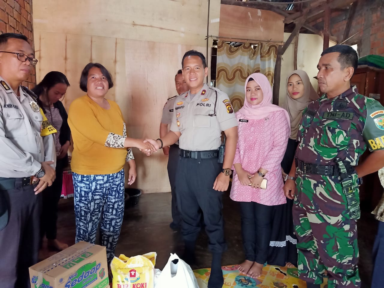 Kompol Irwanto Kapolsek Suka Rame memberikan bingkisan kepada Endang warga RT 40 kelurahan srijaya, penyandang Tuna Netra ini mendapat bantuan sembako yang diserahkan langsung oleh Kapolsek kepada wanita separuh baya yang hidup seorang diri, Pemberian sembako disaksikan oleh ketua RT 40, Babinkamtibmas se-kecamatan Alang Alang Lebar, Babinsa dari Koramil Sukarame.
