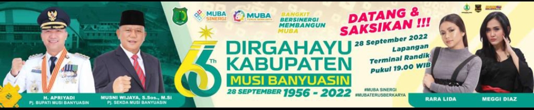 “Puncak acara HUT Muba rencananya tanggal 28 September 2022 nanti yang akan berpusat di terminal Randik. harapan kami perayaan HUT Muba bisa berjalan lancar dan sukses serta masyarakat bisa terhibur dengan kehadiran artis ibu kota Rara Lida dan Meggy Diaz,”ungkapnya.