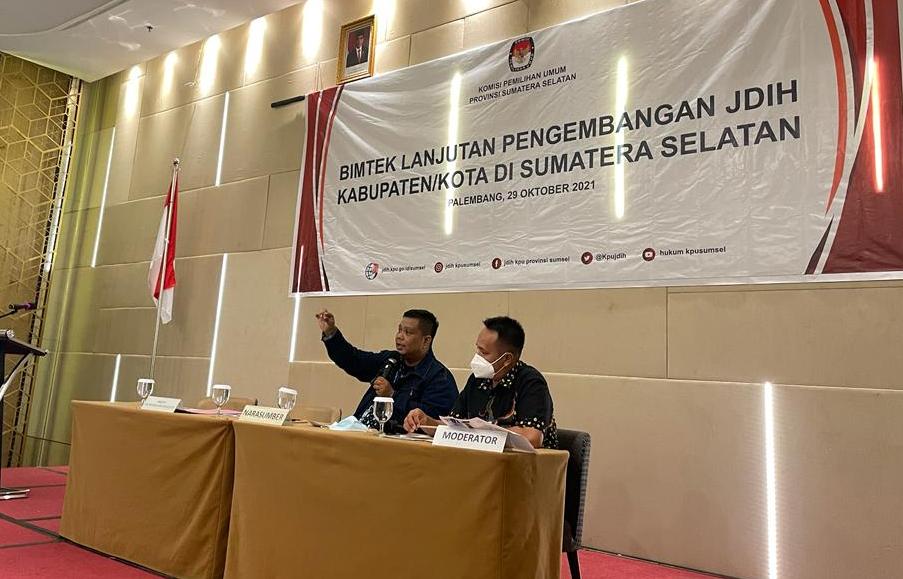 Palembang ,KABARKATA.COM- Guna menindaklanjuti kegiatan daring Pemasangan JDIH KPU Kabupaten/Kota di Provinsi Sumatera Selatan pada tanggal 30 September 2021 oleh KPU Republik Indonesia. KPU Provinsi Sumatera Selatan melaksanakan Bimtek Lanjutan Pengembangan JDIH di Kabupaten/Kota Se-Sumatera Selatan yang diadakan di Ruang Ballroom lt 2 Hotel The Alts Hotel Jl. Rajawali No. 8 Palembang, Jumat (29/10/2021)