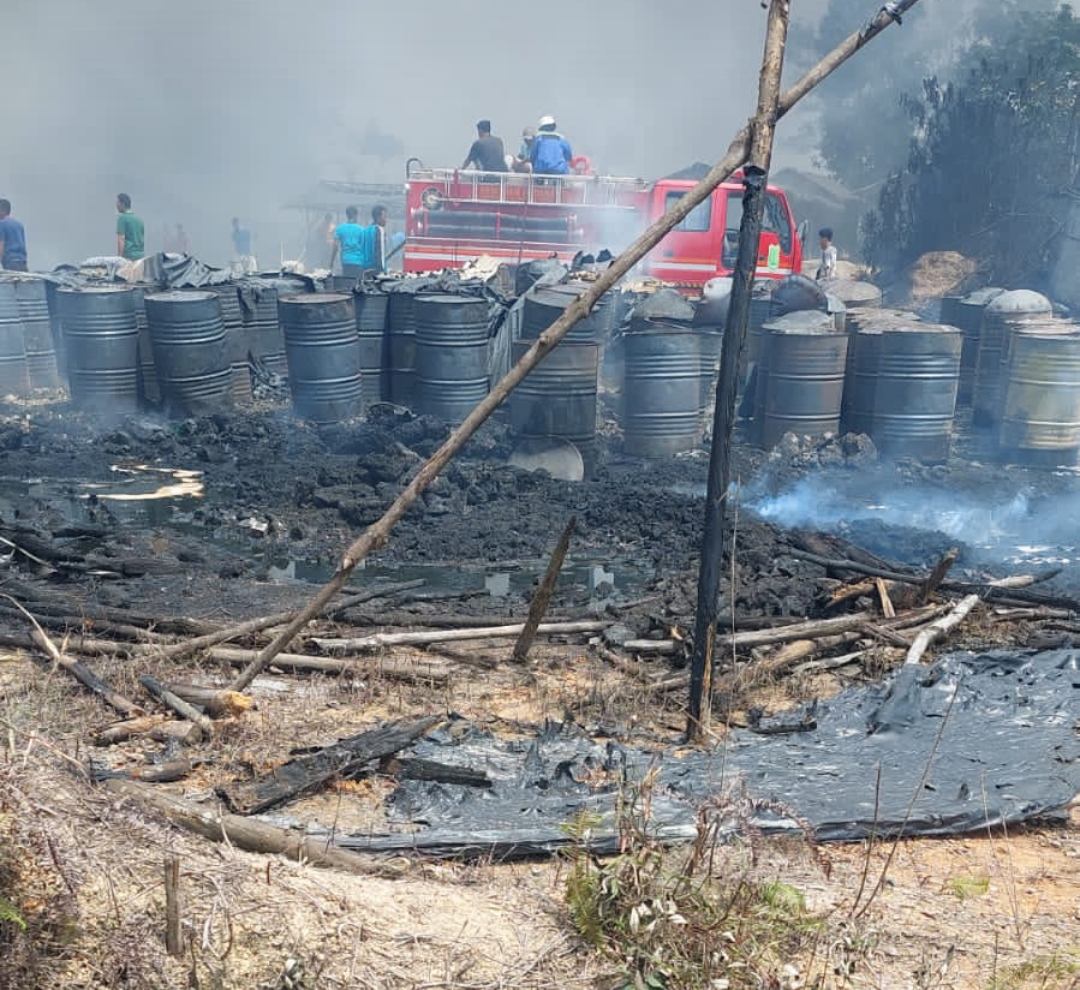 Pasalnya, Hal tersebut terjadi di Duga di Akibatkan oleh ulah Dua Oknum yang Hendak mencuri Besi dan minyak tempat Exs. Penyulingan Tradisional illegal Drilling,Tidak hanya itu, Akhir ulah Oknum itu tidak hanya mengambil besi-besi dan minyak yang ada di lokasi tersebut, akibat ulah nya juga mengakibatkan meledak dan Terbakar nya Drum – Drum yang ada di lokasi Tersebut.
