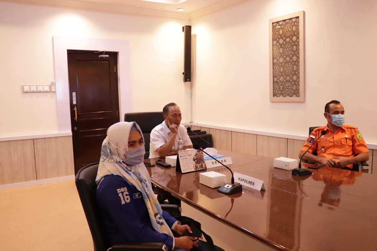 Mewakili Bupati Musi Banyuasin (Muba) H Dodi Reza Alex Noerdin, Sekretaris Daerah Kabupaten Muba Drs H Apriyadi didampingi Kepala Dinas Kesehatan, BPBD dan Perwakilan Polres Muba mengikuti rakor tersebut di Ruang Rapat Sekda, Kamis (27/8/2020).