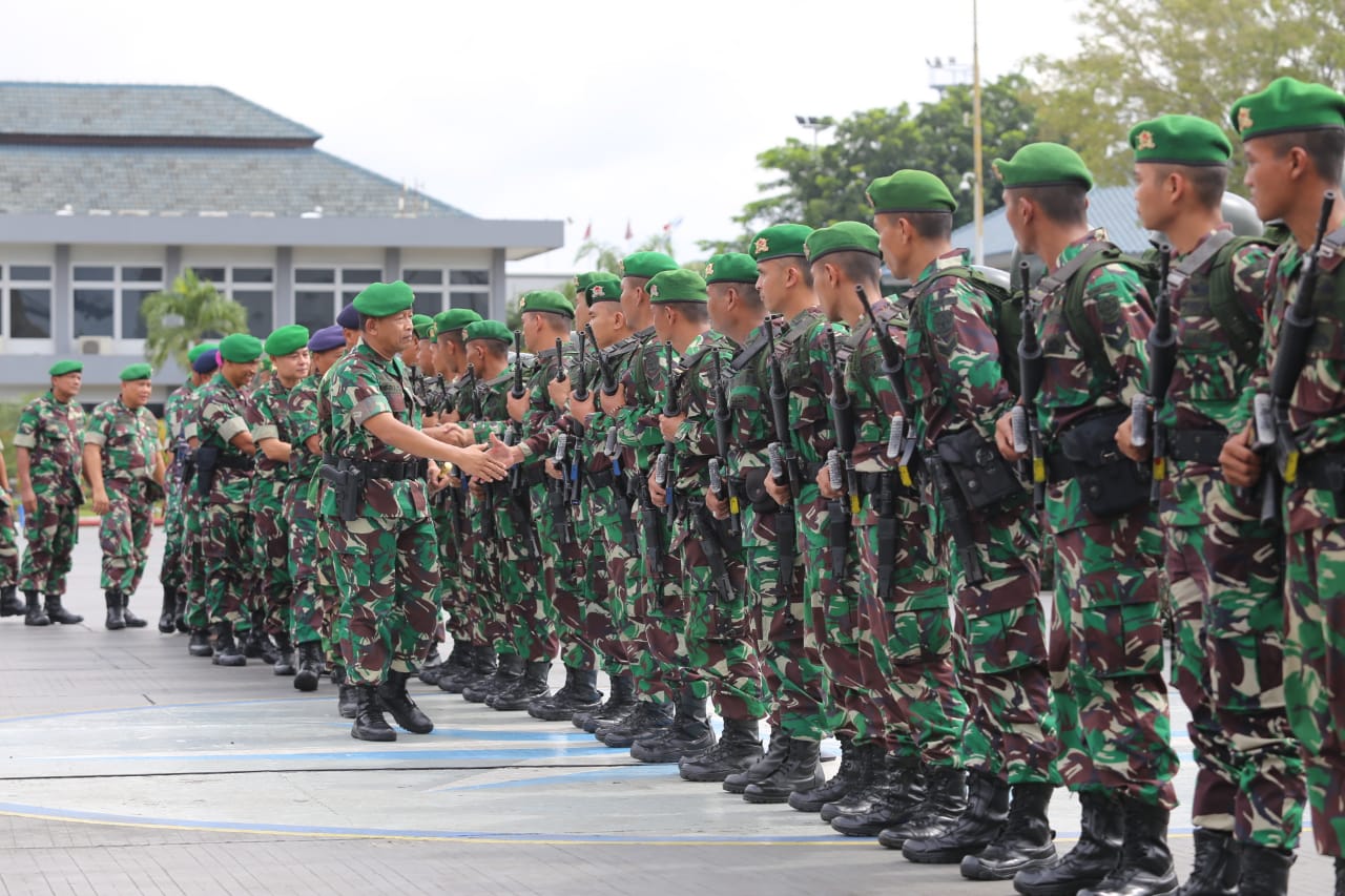 Jakarta, kabarkata.com – Pangdam III/Siliwangi Mayor Jenderal TNI Tri Soewandono, menyambut kedatangan Satuan Tugas Pengamanan Perbatasan (Satgas Pamtas) Yonif 320/Badak Putih Kodam III/Siliwamgi pasca tugas operasi pengamanan perbatasan RI-Malaysia di wilayah Kalimantan Barat, di lapangan Kolinlamil Tanjung Periuk, Jakarta Utara, Juma’at (1/3).
