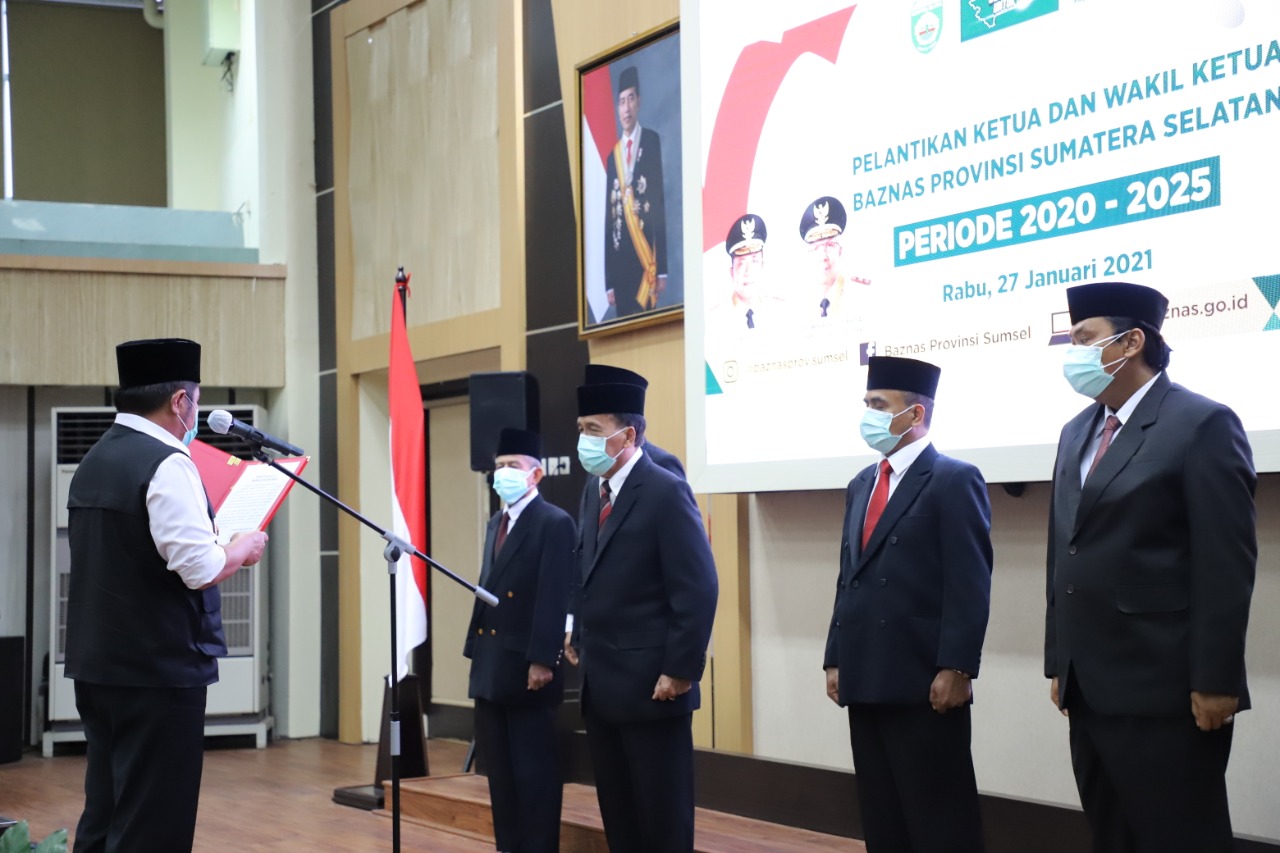 Palembang, kabarkata.com – Gubernur Sumsel H. Herman Deru secara resmi melantik Pengurus Badan Amil Zakat Nasional (Baznas) Provinsi Sumsel periode 2020-2025, di Auditorium Bina Praja, Rabu (27/01/2021).