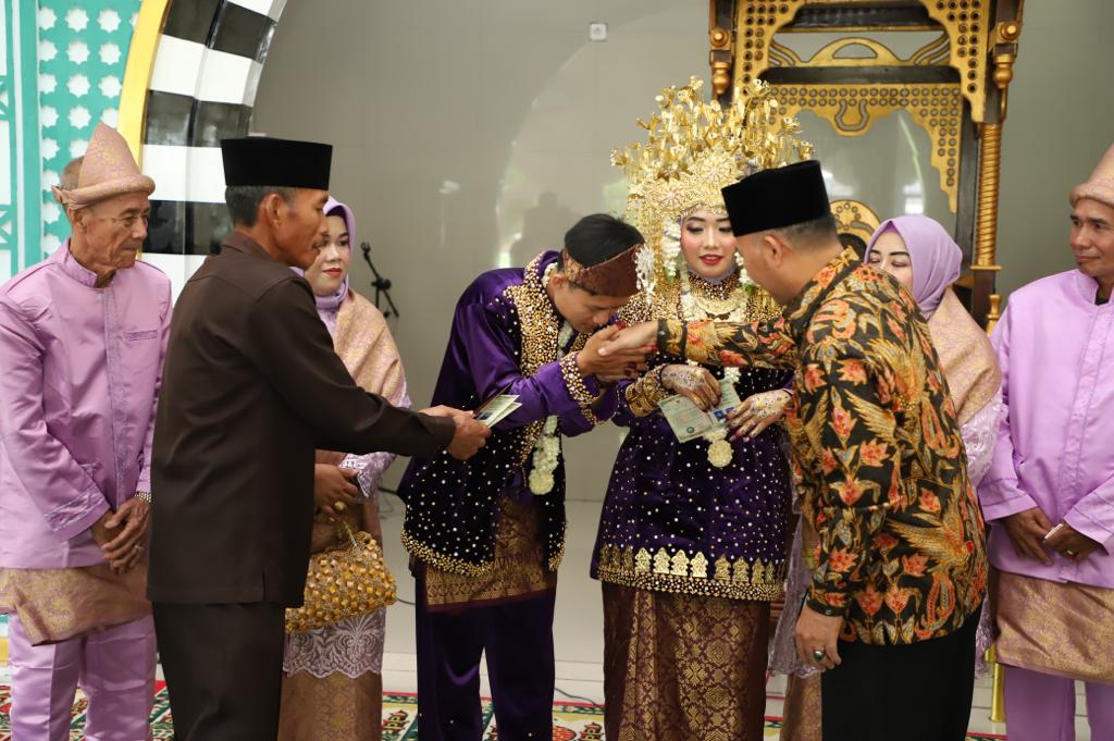 Pantauan di lokasi, tampak Pj Bupati Apriyadi Mahmud turut menjadi saksi akad nikah Zul dan Intan.
