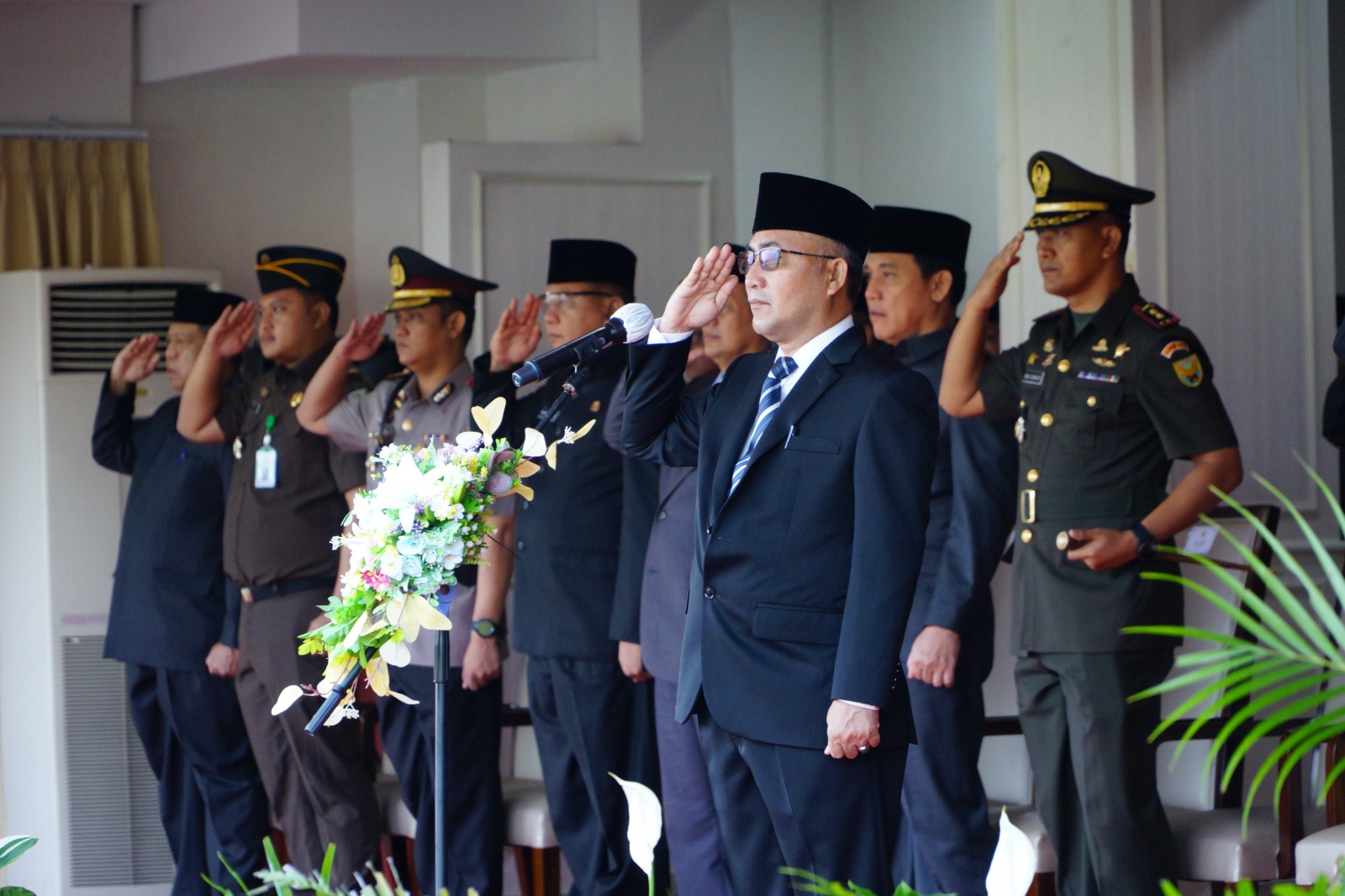 di Halaman Kantor Bupati Muba dipadati oleh peserta upacara berdiri kokoh memberikan penghormatan kepada Sang Saka Merah Putih, Senin (5/6/2023).