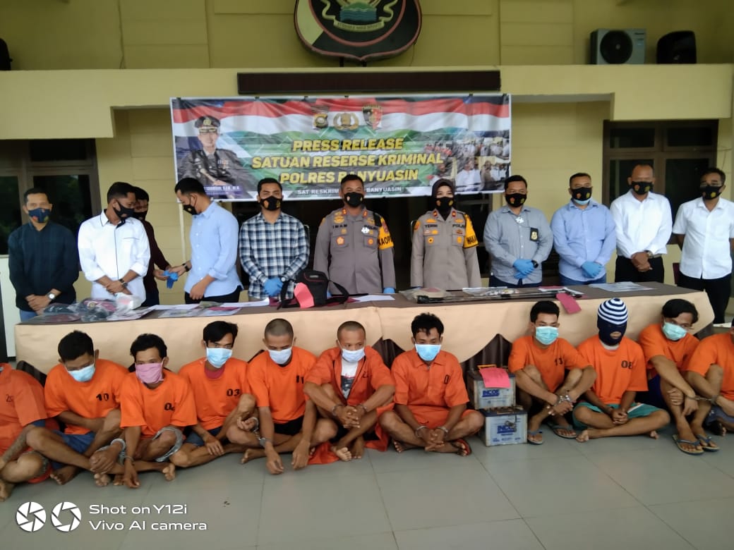 Kapolres Banyuasin AKBP Imam Tarmudi.SIK.MH didampingi Wakapolres Kompol Kompol Yenni Diarti.SIK, Kasatreskrim AKP Muhammad Ikang Ade Putra.SIK.MH, Kanit Pidum Ipda Deka beserta Kanit jajaran Polsek Banyuasin mengungkapkan selama 15 hari terakhir ada 14 orang pelaku kejahatan dari 14 Kasus yang berhasil ditangkap.