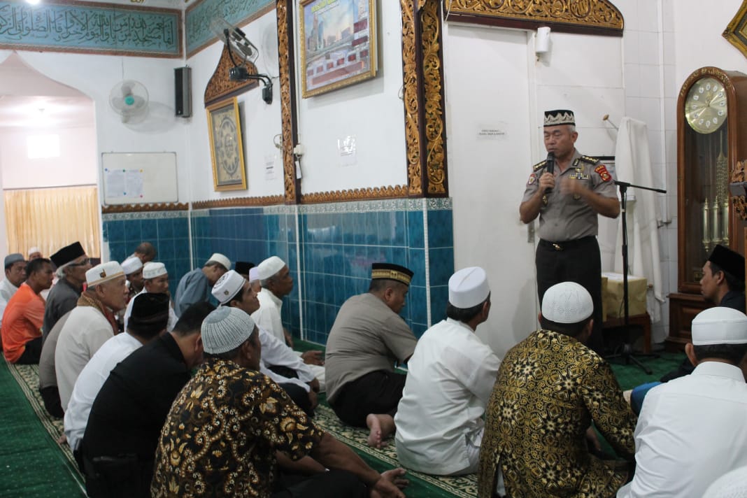 Kami meminta kepada jamaah yang hadir untuk bisa menyampaikan kepada keluarga, tetangga sekitarnya untuk bersama peduli akan bahaya narkoba, mari kita semua untuk mengawasi dan memberikan informasi kan kepada kita sebagai pihak Kepolisian, karena narkoba bisa membahayakan generasi kita selanjutnya, pungkas Kapolda”.