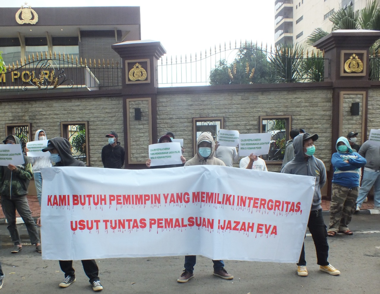 Sejumlah masa melakukan aksi di depan Gedung Mabes Polri Jakarta