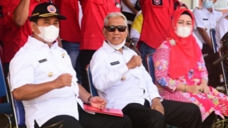 BANYUASIN, KABARKATA.COM— Bupati Banyuasin, H. Askolani, SH., MH didampingi Wakil Bupati H.Slamet Somosentono, SH menghadiri acara penanaman bibit tanaman buah-buahan bantuan dari Pemuda Batak Bersatu (PBB) Banyuasin di Halaman Rumah Susun Pemerintah Kabupaten Banyuasin, Rabu (14/4/2021).