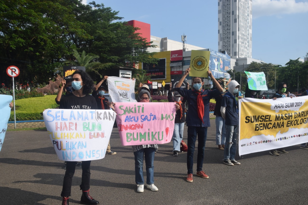Palembang,KABARKATA.COM- 22 April 2021 Memperingati Hari Bumi sedunia jatuh setiap tanggal 22 April, untuk mengingatkan kembali kesadaran kepada manusia planet Bumi menjaga, merawat dan bertanggung jawab atas bumi yang dihuni. Pada momen Hari Bumi ke-51 dengan mengusung tema “Sumsel Masih Darurat Bencana Ekologis” organisasi pencinta alam, organisasi mahasiswa, komunitas dan penggiat lingkungan, serta masyarakat yang memiliki kesadaran terhadap pelestarian lingkungan hidup mengingatkan kembali bahwa Bumi kita sedang tidak baik-baik saja. Berdasarkan catatan WALHI Sumatera Selatan 5 tahun terakhir menunjukkan bahwa, perubahan bentang alam yang terjadi di Sumatera Selatan mengakibatkan bencana-bencana ekologis.