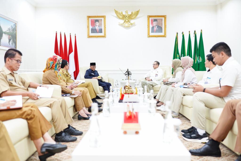 SEKAYU, KABARKATA.COM- Tekan laju inflasi akibat harga komoditi kebutuhan pokok, Pj Bupati Muba H Apriyadi Mahmud mendorong Aparatur Sipil Negara (ASN) di jajaran Pemkab Musi Banyuasin untuk mengkonsumsi beras lokal atau Bulog. Ini disampaikannya saat menerima audiensi Jajaran Perusahaan Umum (Perum) Bulog Kanwil Sumsel dan Babel, Selasa (29/8/2023) berlangsung di ruang audiensi Bupati Muba.