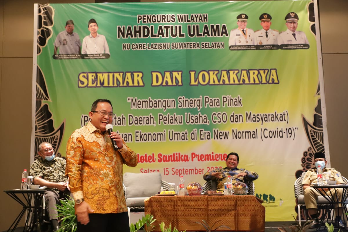 Ekonomi Umat di Era New Normal (Covid-19) yang diselenggaraam PWNU Sumsel bersama LAZISNU Dengan Tema “Program dan Kebijakan Pemajuan Ekonomi Umat Kabupaten Musi Banyuasin di Era New Normal di Hotel Santika Premiere Bandara Palembang, Selasa (15/9/2020).