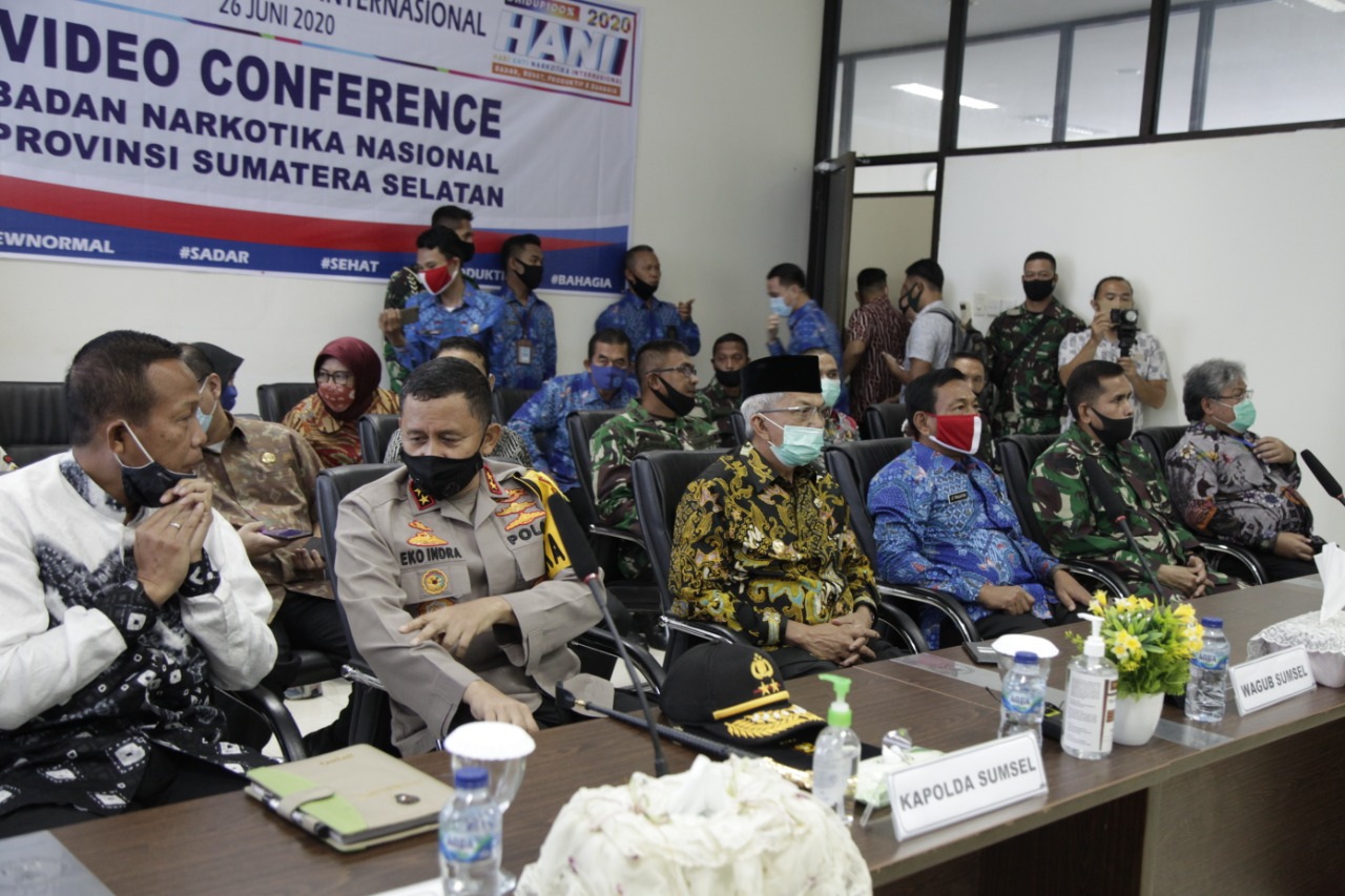PALEMBANG,kabarkata.com – Wakil Gubernur Sumatera Selatan (Sumsel) H Mawardi Yahya menyebut, perang melawan narkoba harus dilakukan secara sistematis, terstruktur dan masif oleh semua pihak. Hal itu disampaikannya saat menghadiri puncak peringatan Hari Anti Narkotika Internasional (HANI) 2020 di Kantor Badan Narkotika Nasional Provinsi (BNNP) Sumsel, (26/6).